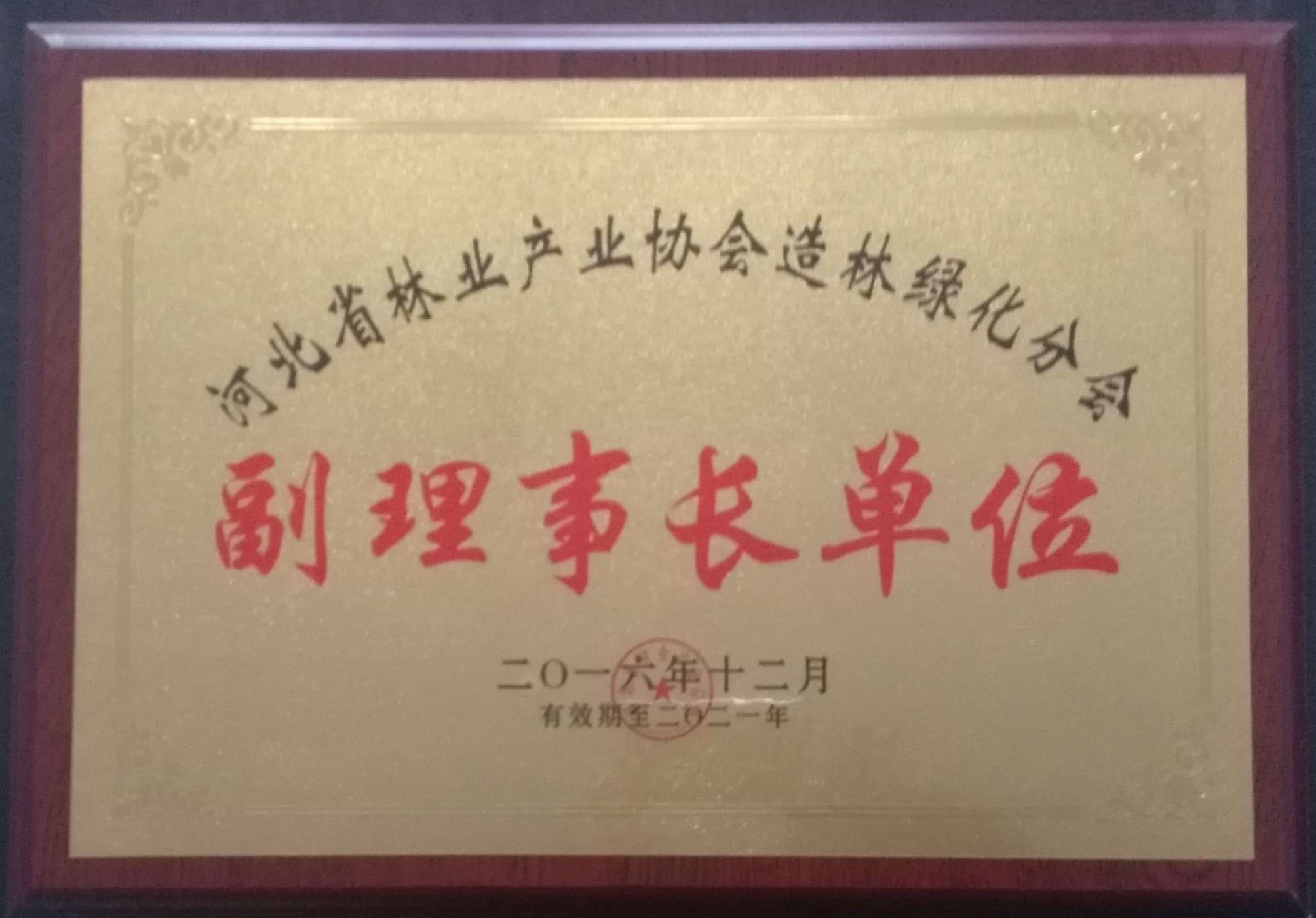 2016年12月,河北一森園林綠化工程股份有限公司榮獲河北省林業(yè)產(chǎn)業(yè)協(xié)會副會長單位和河北省林業(yè)產(chǎn)業(yè)協(xié)會造林綠化分會副理事長單位!